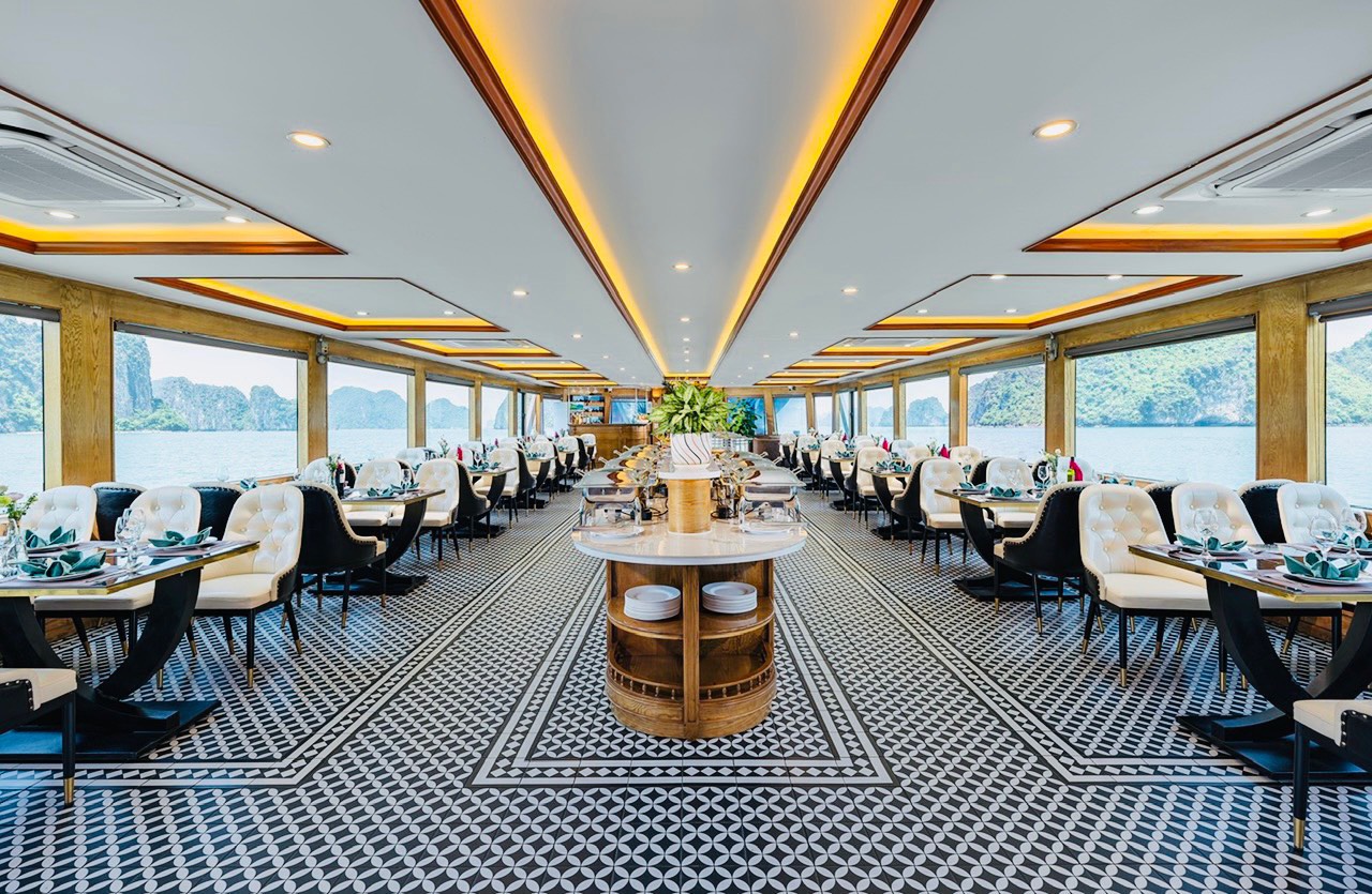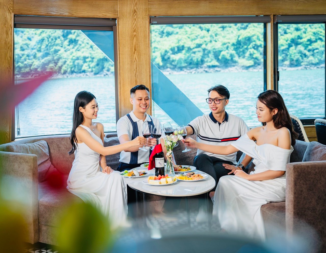 12h00 – 13h15. Dùng bữa trưa trên du thuyền